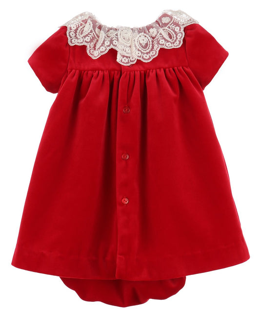 Luli & Me Girls Deluxe Velvet Float Dress - Lace Collar - Red