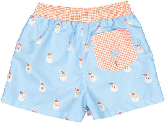 Sal & Pimenta Boys Swim Trunks - Blue Santa Claus Tell Me Print