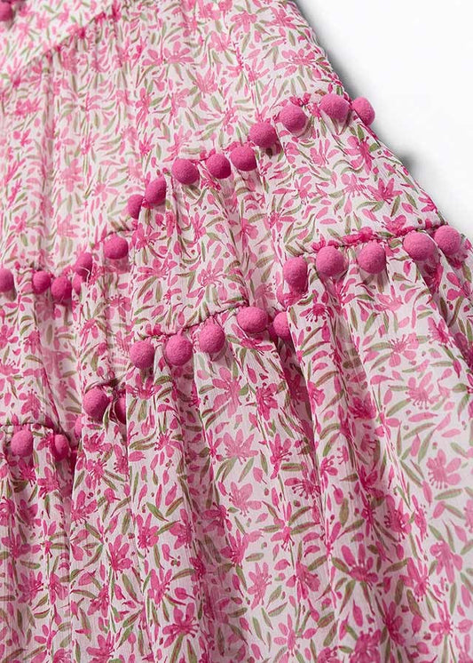 Abel & Lula Girls Bambula Midi Dress - Pom Poms - Fuchsia Pink