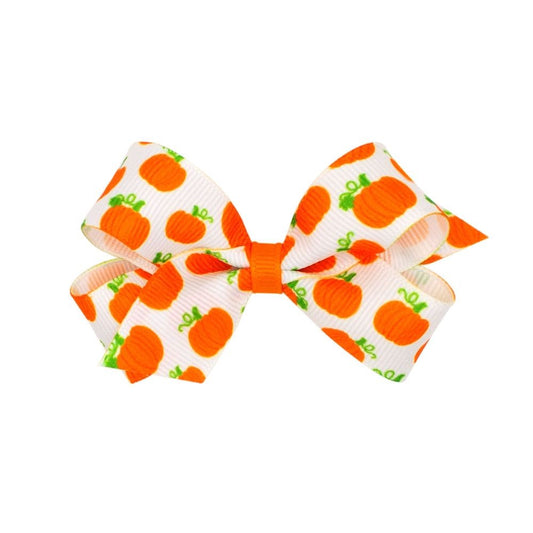 Wee Ones Girls Harvest Theme Printed Grosgrain Bow - Orange Pumpkins