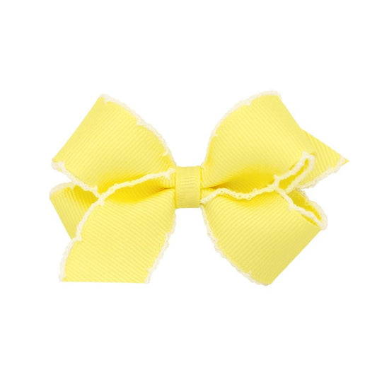 Wee Ones Girls Classic Moonstitch Bow on Clip - Yellow with White
