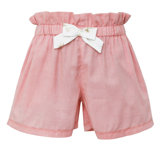 Claire & Charlie Girls Ivory Reindeer Print Ruffle Blouse with Dusty Rose Shorts