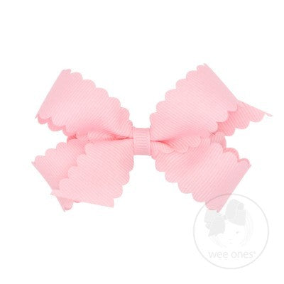 Wee Ones Girls Grosgrain Hair Bow on Clip - Scallop Edge - Light Pink