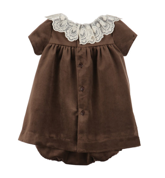 Luli & Me Girls Deluxe Velvet Float Dress - Lace Collar - Chocolate Brown