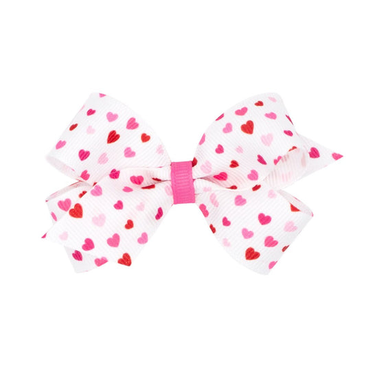 Wee Ones Girls Hair Bow on Clip - Tiny Pink & Red Valentine Hearts on White