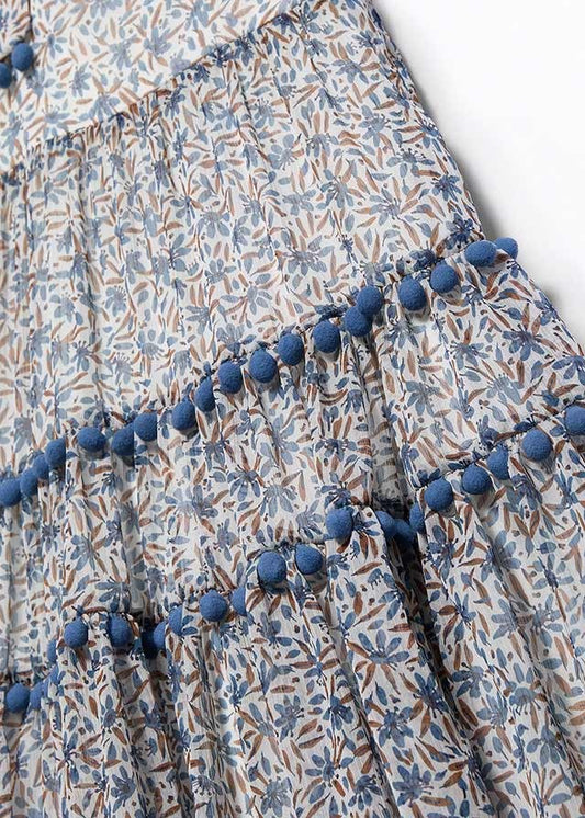 Abel & Lula Girls Bambula Midi Dress - Pom Poms - Blue