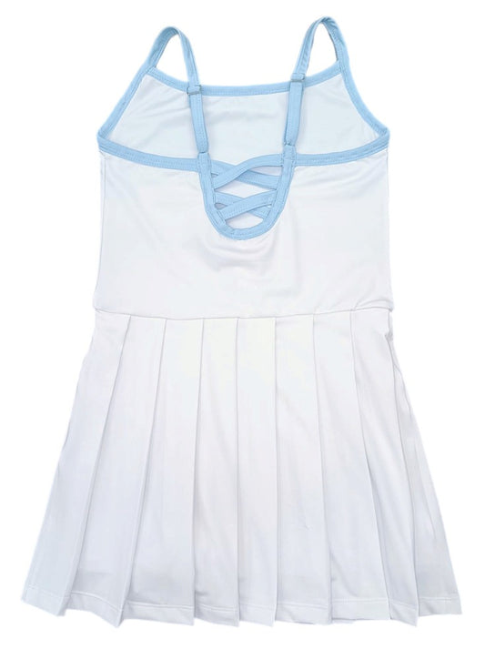 Be Elizabeth by James & Lottie Girls Pleated White Athleisure Tennis Dress - Piped in Blue