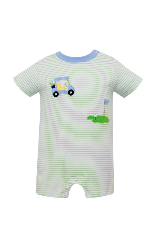 Claire & Charlie Baby Boys Green Stripe Golf Theme Romper