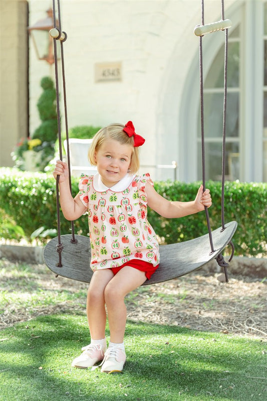 Proper Peony Pima Girls Red Gala Apples Bloomers Set