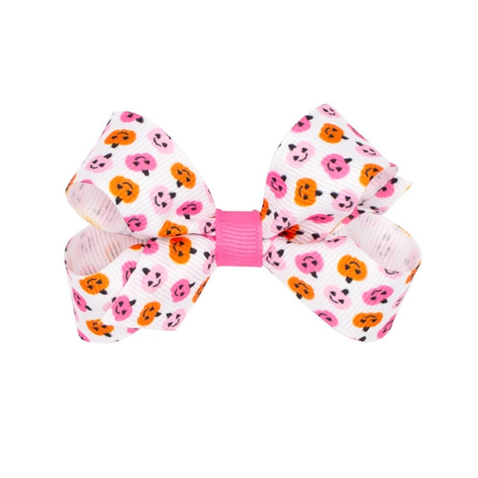 Wee Ones Girls Hair Bow on Clip - Pink & Orange Halloween Jack O'Lanterns Print