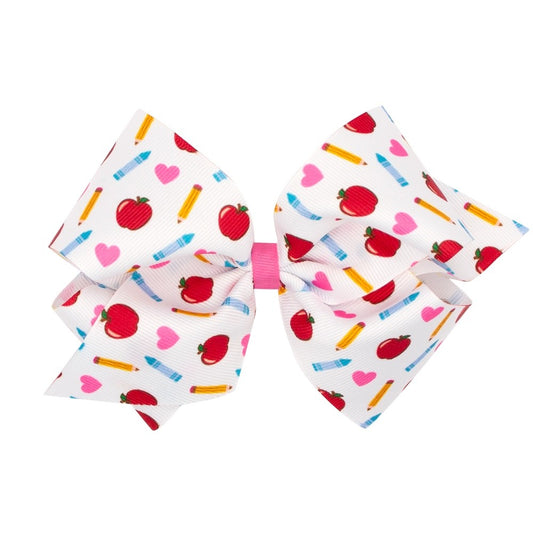 Wee Ones Girls Hair Bow on Clip - Back to School - Pencil & Apple Print