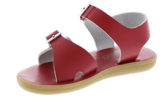 Footmates Children's Waterproof Tide Sandals in Apple Red are practical, water-ready sandals designed for active kids who love outdoor adventures. Featuring a leather upper and leather footbed with an easy, secure closure, they offer everyday comfort and straightforward on/off for busy families.