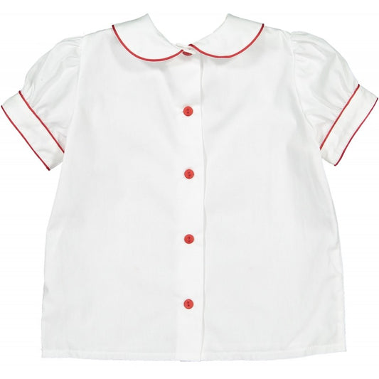 Sal & Pimenta Boys Shirt - White with Red Piping - Short Sleeves