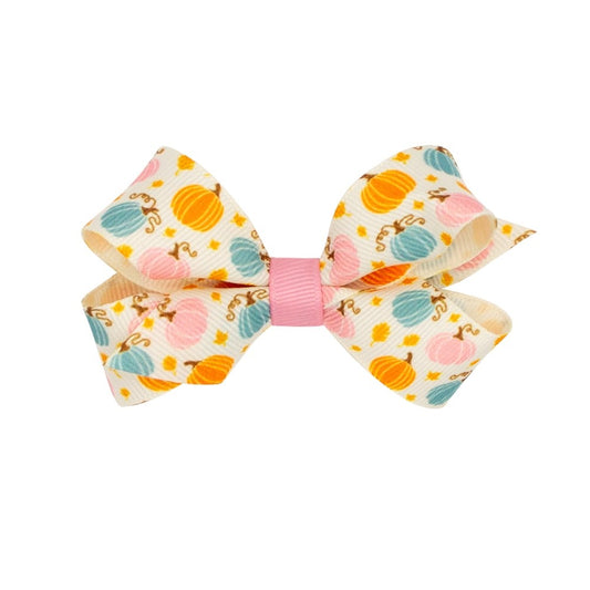 Wee Ones Girls Hair Bow on Clip - Pastel Harvest Pumpkins Print
