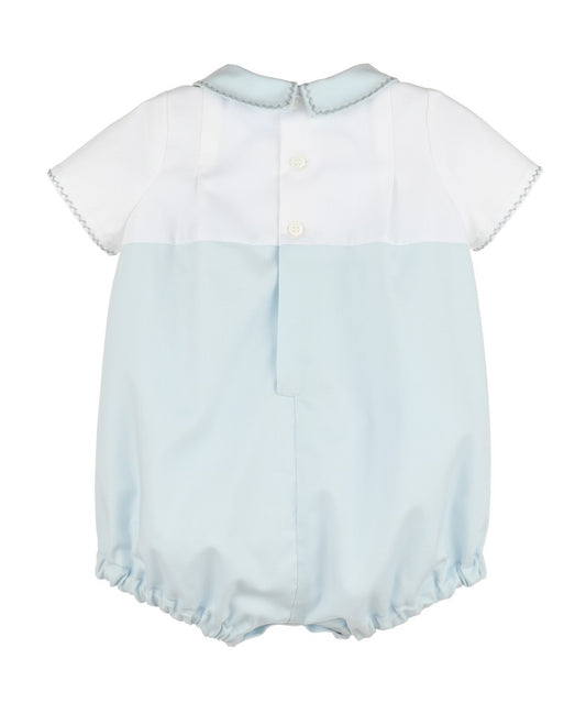 Luli & Me Baby Boys Feather Stitch Bubble - White with Light Blue
