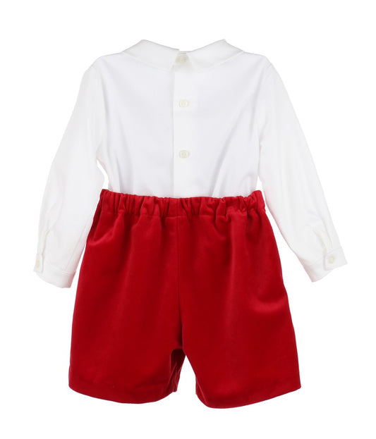 Luli & Me Boys Deluxe Velvet Shorts Set - Embroidery Shirt - Red
