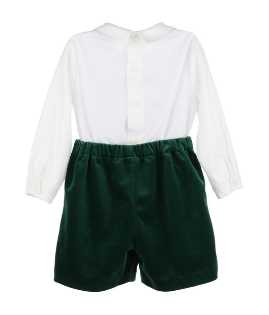 Luli & Me Boys Dressy Shorts Set with Holiday Embroidery - Velvet - Green