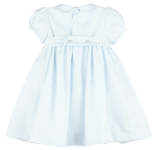 Luli & Me Girls Bouquet Smocked Dress - Scallop Collar - Blue