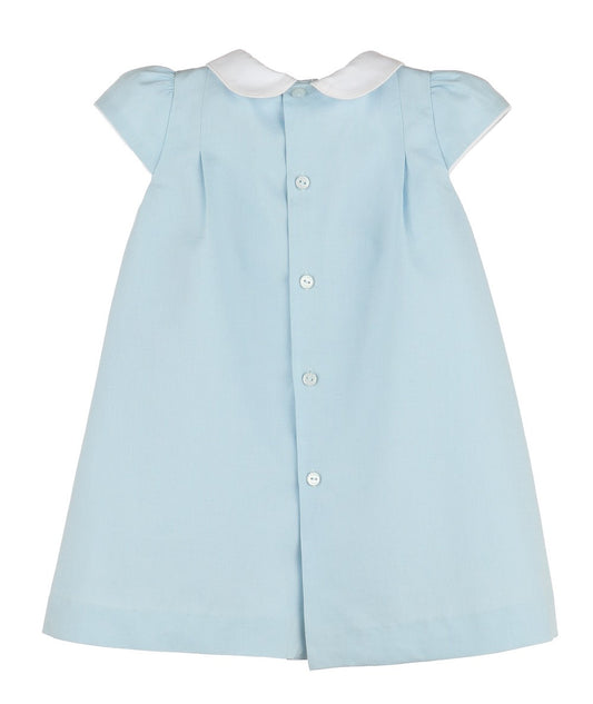 Luli & Me Girls Lovers Linen Dress - Scallop Details - Blue