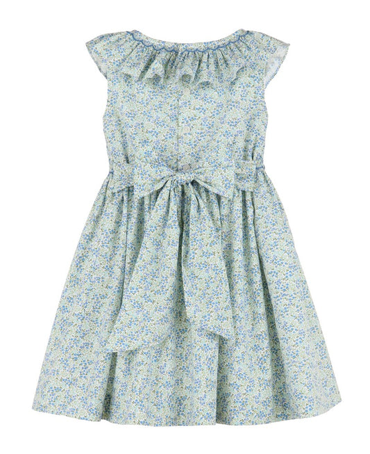 Luli & Me Girls Tiny Floral Smocked Dress with Ruffle Neck - Blue
