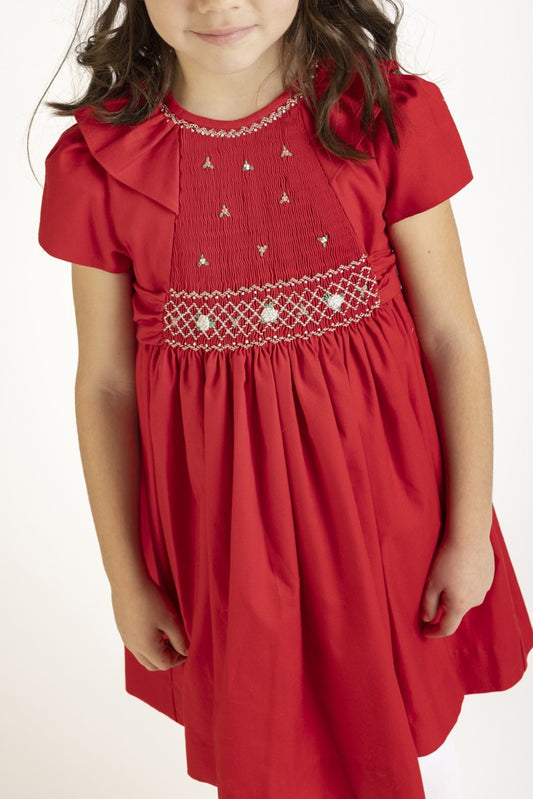 Luli & Me Girls Timeless Bliss Red Smocked Christmas Dress