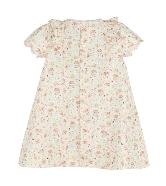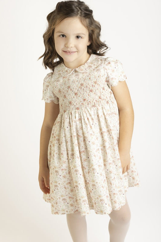 Luli & Me Girls Winterberry Floral Dress - Smocked Bodice - Ruffle Collar