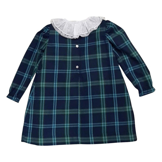 Marco & Lizzy Girls Blue / Green Blackwatch Plaid Float Dress - Lace Collar