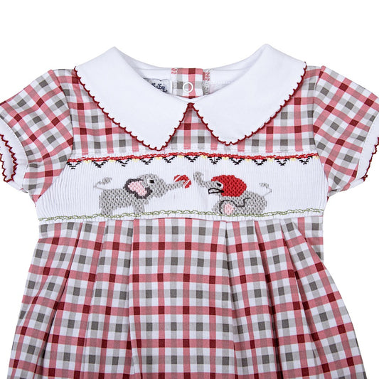 Magnolia Baby Girls Alabama Elephant Football Crimson Tide Checks Smocked Dress