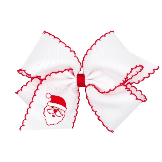 Wee Ones Girls Hair Bow - Embroidered Santa Face on White Bow