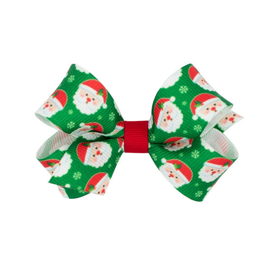 Wee Ones Girls Hair Bow on Clip - Santa Print on Green Bow