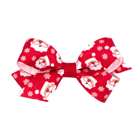 Wee Ones Girls Christmas Hair Bow - Red Santa Faces & Snowflakes