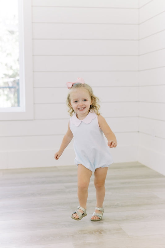Proper Peony Pima Baby Girls Light Blue Stripe Scallop Collar Bubble