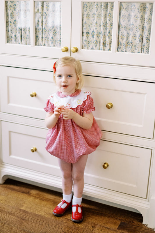Proper Peony Baby Girls Red Check Crispin Apple Bubble - Scallop Collar