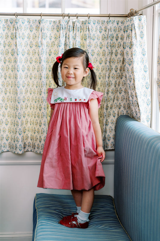 Proper Peony Girls Red Check Bookworm Eric Carle Caterpillar Dress