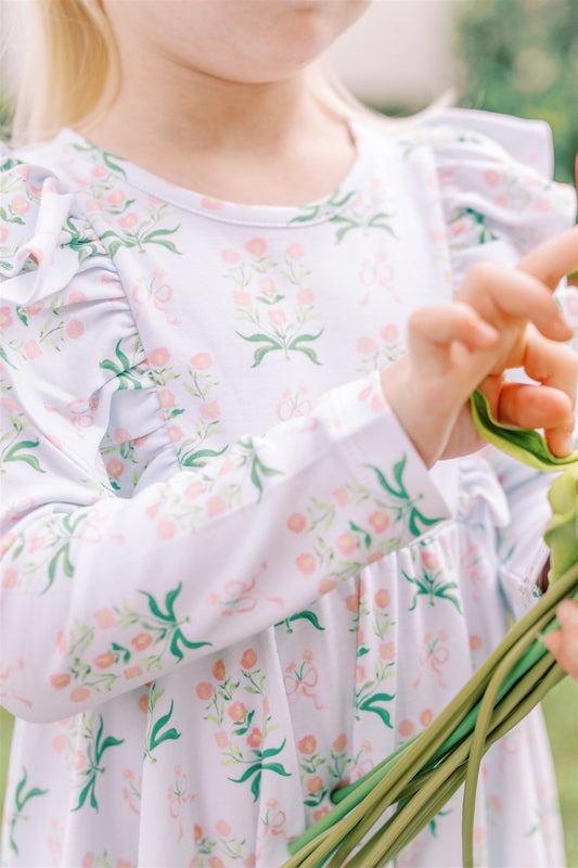 Proper Peony Pima Girls Blue Floral Margot Twirl Dress
