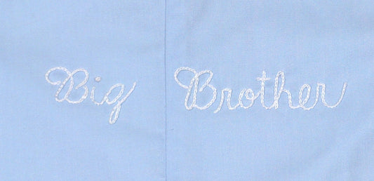 Wee Ones Girls White Hair Bow - Blue Moonstitch - Embroidered Big Sis - Blue