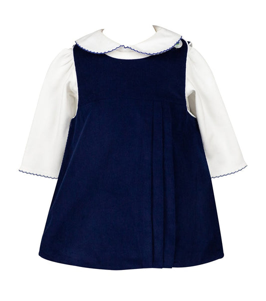 Proper Peony Girls Side Pleat Jumper Dress - Simone Navy Blue Corduroy
