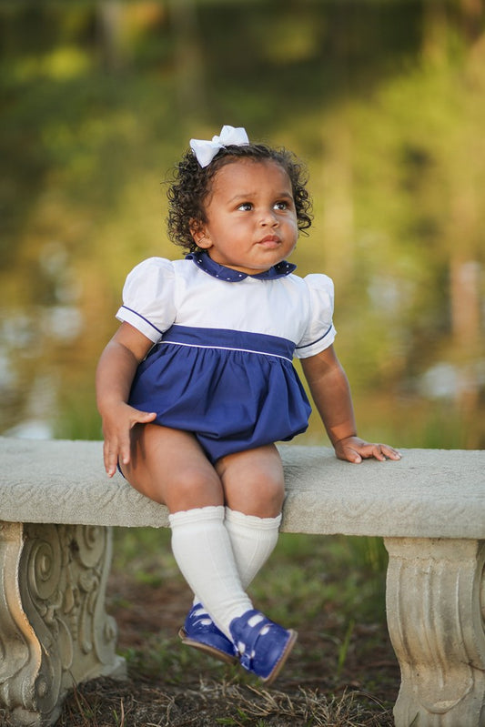 Proper Peony Baby Girls Bubble - Navy Blue Francois Dot