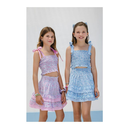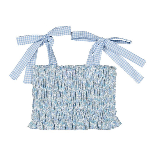 Sal & Pimenta Maryland Girls Shirred Tie Top - Ditsy Floral - Blue