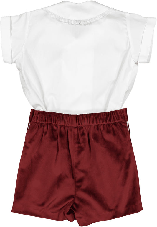 Sal & Pimenta Boys Dressy Shorts - Holiday Velvet - Burgundy