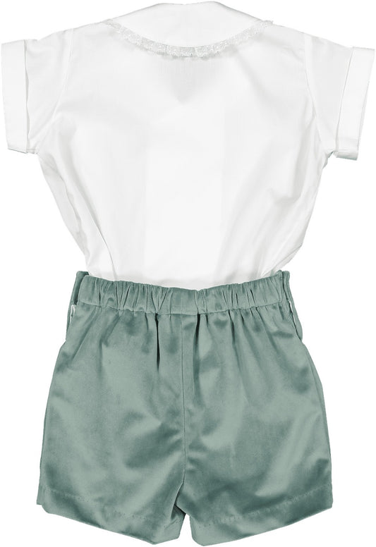 Sal & Pimenta Boys Dressy Shorts - Velvet - Forest Sage Green
