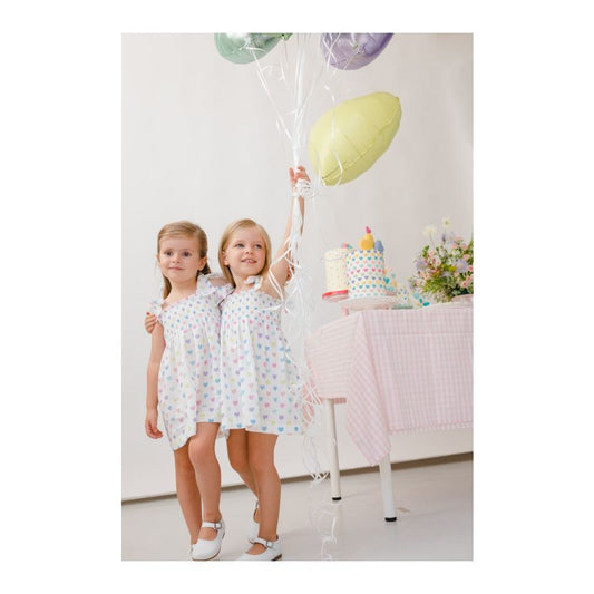Sal & Pimenta Girls Dress - Pastel Funny Hearts - Smocked with Ties