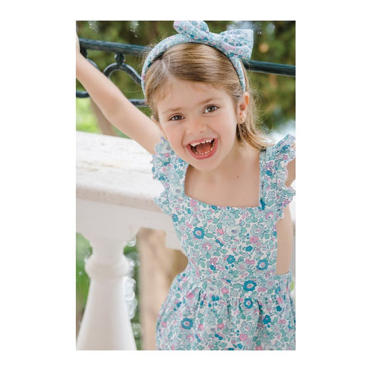 Sal & Pimenta Girls Dress - Aqua Betsy Liberty Floral with V-Back