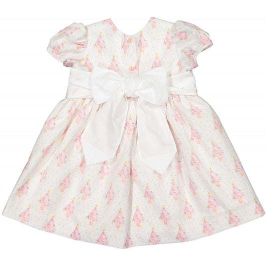 Sal & Pimenta Girls Dress - Pink Wonderland Christmas Trees with Sash