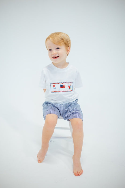 Shop Teeta Boys Blue Check Smocked Patriotic Shorts Set