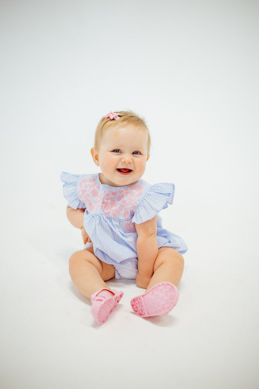 Shop Teeta Girls Blue Emilia Bubble - Pink Embroidery