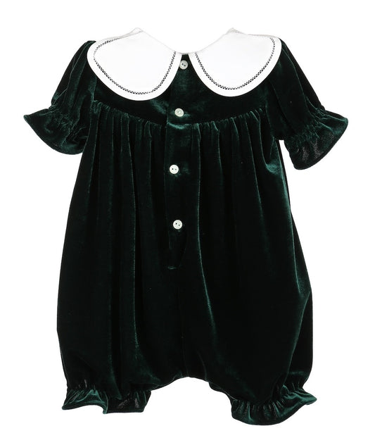 Sophie & Lucas Baby Girls Velvet Christmas Bubble with White Petal Collar - Emerald Green
