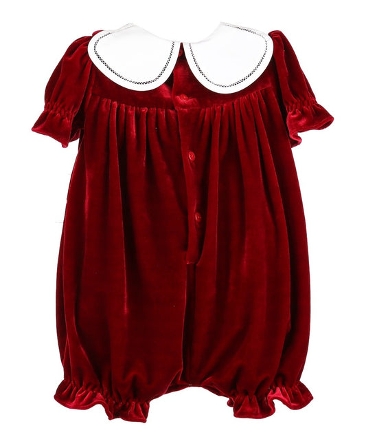 Sophie & Lucas Baby Girls Velvet Christmas Bubble with White Petal Collar - Red