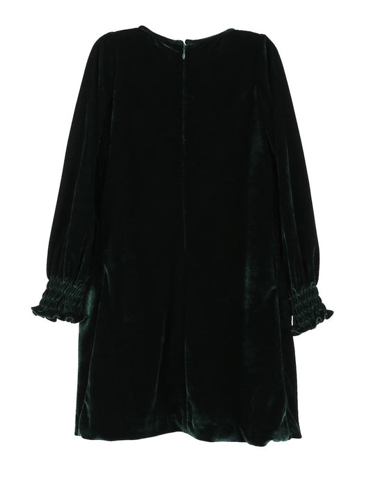Sophie & Lucas Girls Velvet Christmas Dress with White Petal Collar - Emerald Green