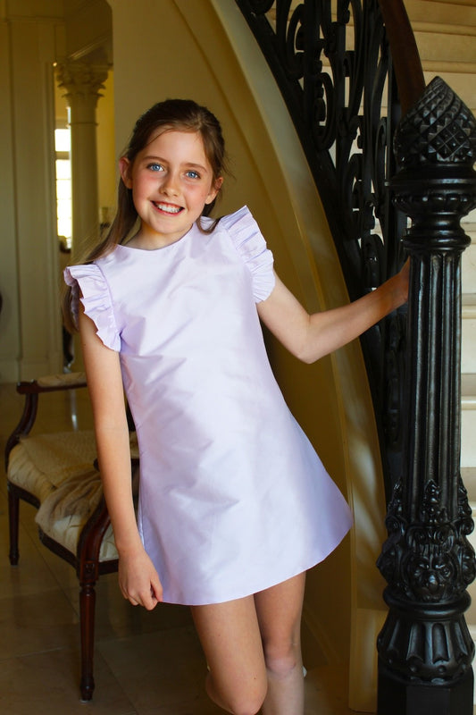 Susanne Lively Girls Faux Silk A-Line Dress - Flutter Sleeves - Lilac Lavender